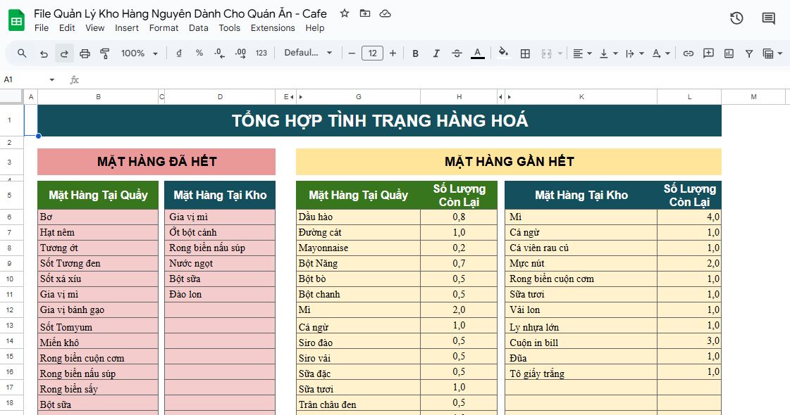 - File sử dụng trên nền tảng google sheet, dễ dàng quản lý online từ xa